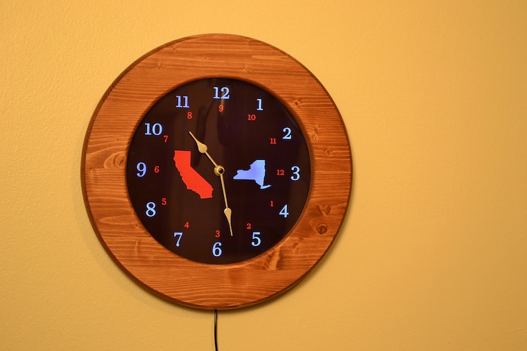 Custom request. "Design a dual time zone clock for NY and Cali."