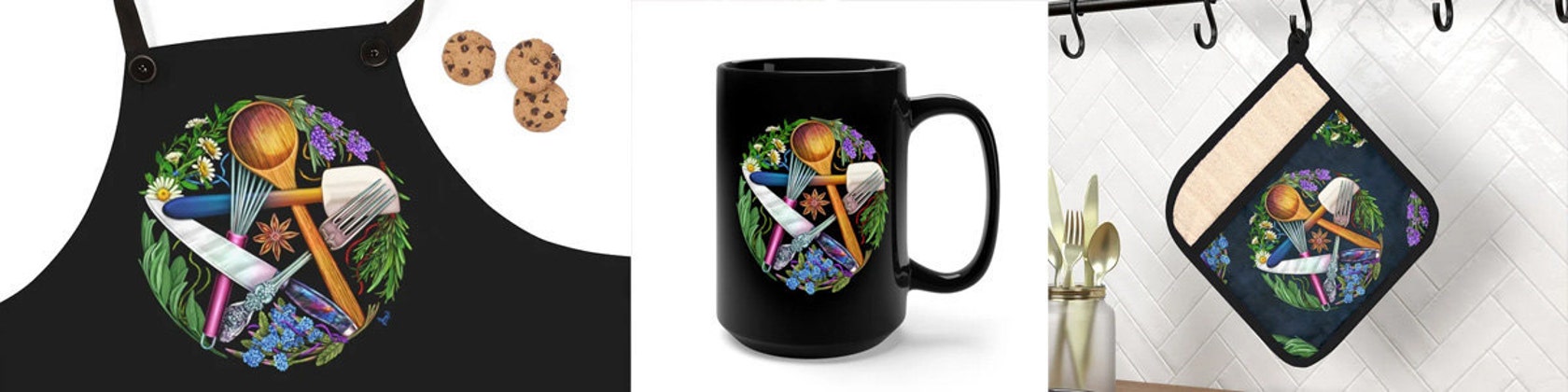 But that's not all! I also sell my work on my Etsy shop. I've partnered with a professional printer to create awesome stuff like t-shirts, zipper pouches (perfect for tarot bags), coffee mugs, wall art, shirts, kitchen stuff, and tote bags. When you buy from my Etsy shop, these items are drop-shipped right to your doorstep.