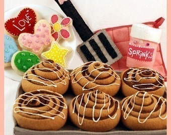 BAKERY SWEETS - PDF Felt Food Pattern (Cinnamon Rolls, Sugar Cookies, Sprinkles, Spatula, Hot Pad and Baking Sheet)