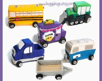 CARS 1 - PDF Sewing Pattern (School Bus, Tractor, Taco Truck, Truck, Camping Trailer, Trailer)