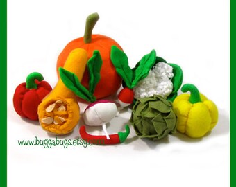 GARDEN VEGGIES - Felt Food PDF Pattern (Pumpkin, Artichoke, Bell Pepper, Radish, Turnip, Butternut Squash, Cauliflower, Jalapeño)