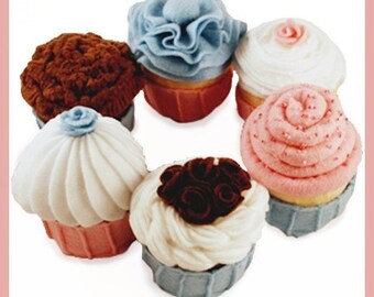 CUPCAKES - PDF Felt Food Pattern (Six Assorted Cupcakes with Removable Baking Cups)