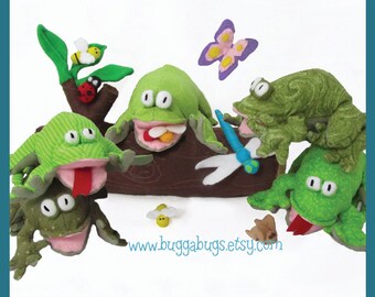 Five Green & Speckled Frogs - PDF Doll Pattern (Frogs, Bugs, Log)