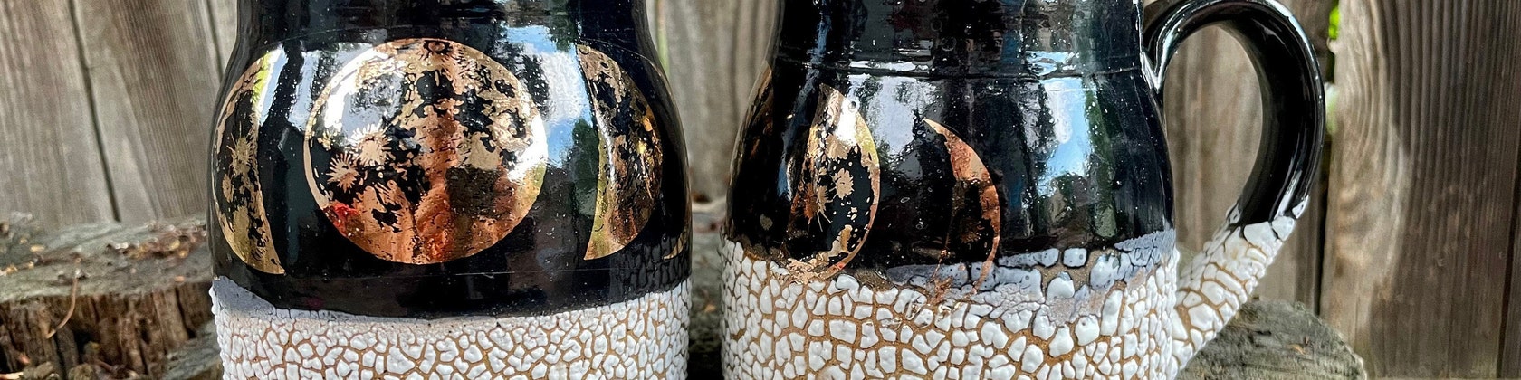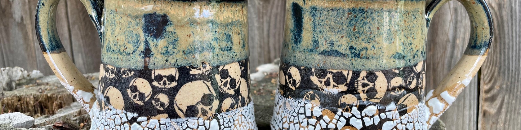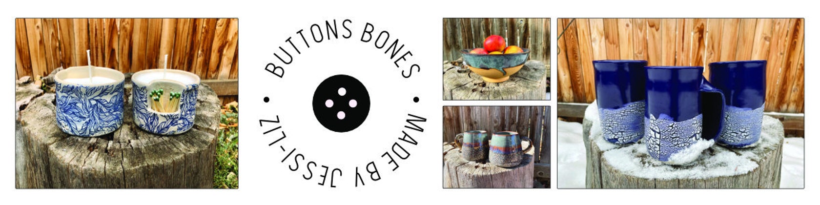 The name Buttons Bones Pottery comes from my senior show in college; I created a series of wares that included both cute ceramic buttons and creepy ceramic bones and teeth. You may see this style pop up in my shop from time to time for nostalgic reasons (and it looks pretty cool). Additionally, I like pottery to have movement and flow. I like to imagine the clay can still move even after being made solid.