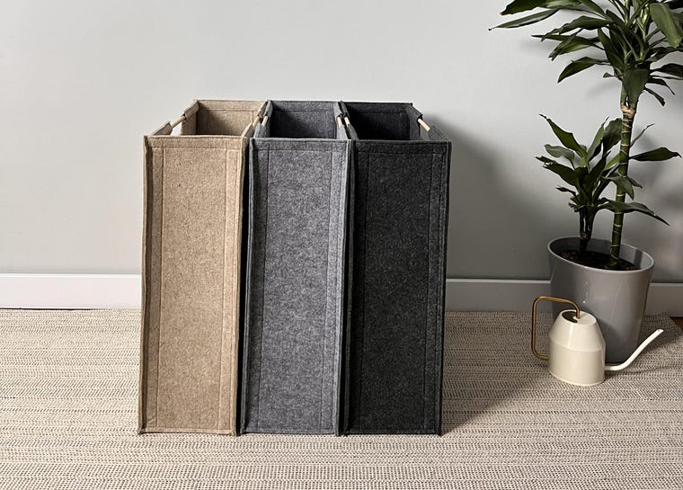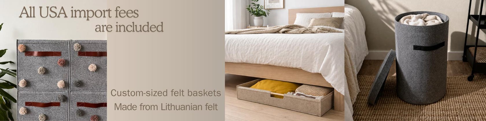 Handmade custom-size felt baskets & laundry hampers from Lithuania