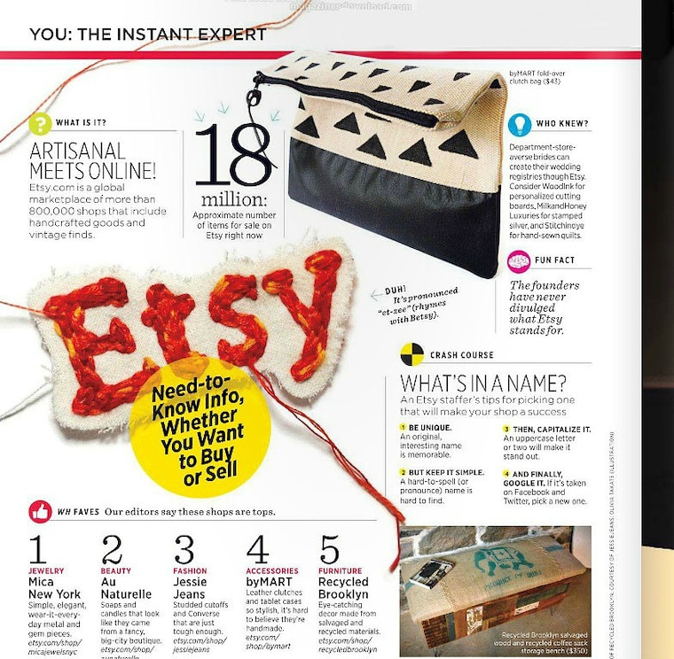 byMART featured in Woman's health magazine with my hand painted clutch bag -