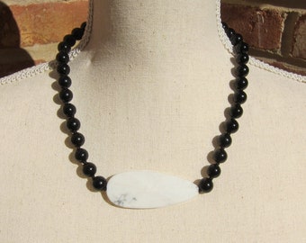 Howlite Arrowhead Pendant Necklace - Genuine Howlite & Black Onyx + Knotted Silk Thread - Natural Onyx and Howlite