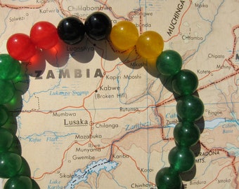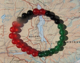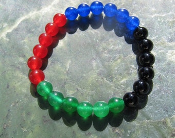 South Sudan - Genuine Dyed Jade and Natural Onyx + Latex-Free Elastic Floss - Unisex Sizes