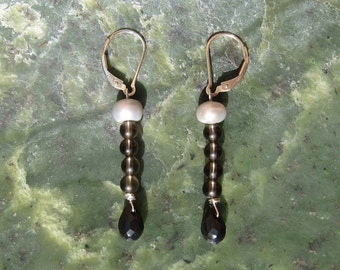 Smoky Quartz Drop Earrings - Genuine Gemstones and Pearl + Sterling Silver Lever Back Hooks - Natural Gemstones