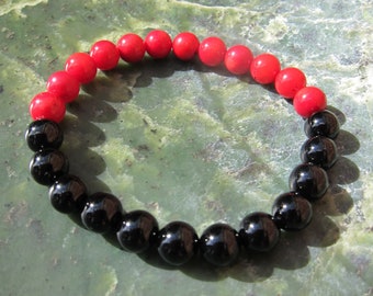Zambia - Genuine Dyed Jade and Natural Onyx + Latex-Free Elastic Floss - Unisex Sizes