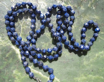 Faceted Lapis Wrap Necklace - Genuine Lapis lazuli + Knotted Silk Thread - Natural Lapis