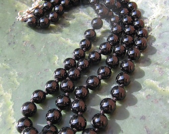 Onyx Double Strand Necklace - Genuine Black Onyx + Knotted Silk Thread - Natural Onyx