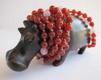 Carnelian + Rose Quartz Mini Wrap Necklace - Genuine Gemstones & Knotted Silk Thread - Natural Gemstones