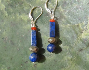 Lapis Drop Earrings - Genuine Gemstones + Sterling Silver Lever Back Hooks - Natural Gemstones
