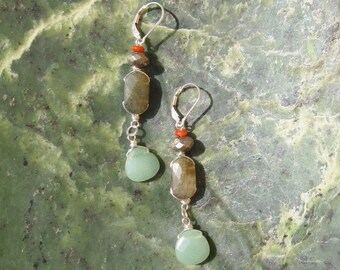 Labradorite + Aventurine Dangle Earrings - Genuine Gemstones + Sterling Silver Lever Back Hooks - Natural Gemstones