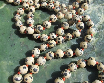 Dalmatian Jasper Wrap Necklace - Genuine Jasper + Knotted Silk Thread - Natural Jasper