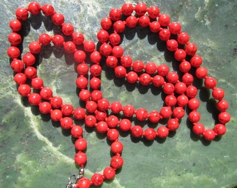 Red Turquoise Wrap Necklace - Genuine Red Turquoise + Knotted Silk Thread - Natural Gemstone