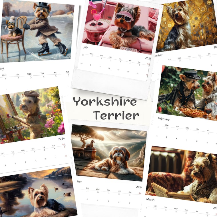 Charming AI Art Calendars: Each Month Features Unique, Stylish Scenes for Various Dog Breeds -