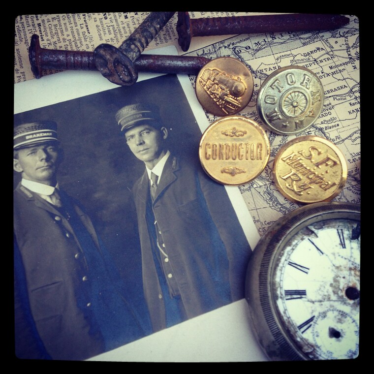 My husband, Johnny, joined the company, helping with photography and soldering in 2011 to help keep up. His love of railroad history and trains has been a delightful addition to my interest in mechanical gadgets and Victorian everything. We've also found a way to use his rather large railroad date nail collection. Working together has been a fabulous adventure - We've learned a lot about family business.