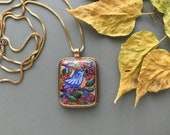 5 out of 5 starsThis pendant really caught my eye when I saw the listing. I thought the colors on the pretty bird were magnificent and seeing it in person did not disappoint! The quality is remarkable and I love knowing it was hand painted. The artist is really gifted! Shipped very fast and received in a timely manner! My new favorite pendant!