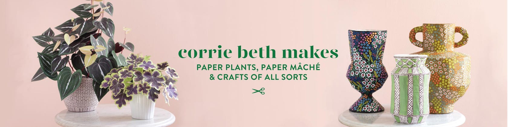 Hi! I’m Corrie. I’m a lifelong maker, currently obsessed with creating paper plants and decorative home goods from recycled materials and papier-mâché.