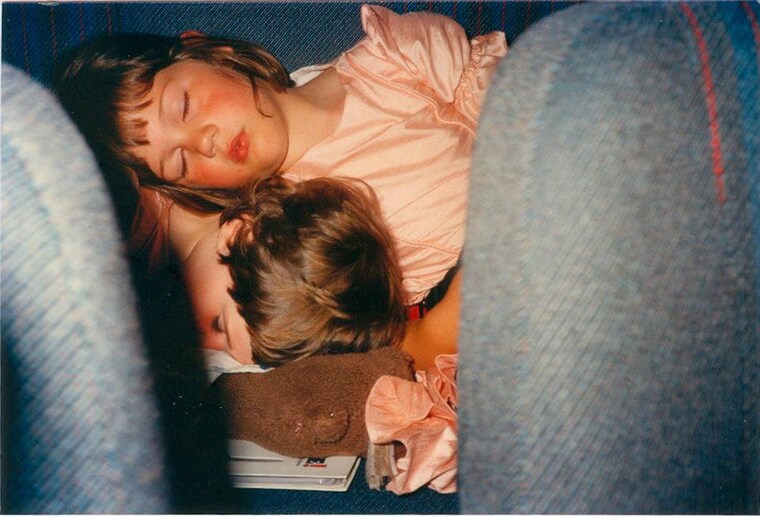 Penny (Caroline's sister) and Caroline after a long day of being bridesmaids (1988) -