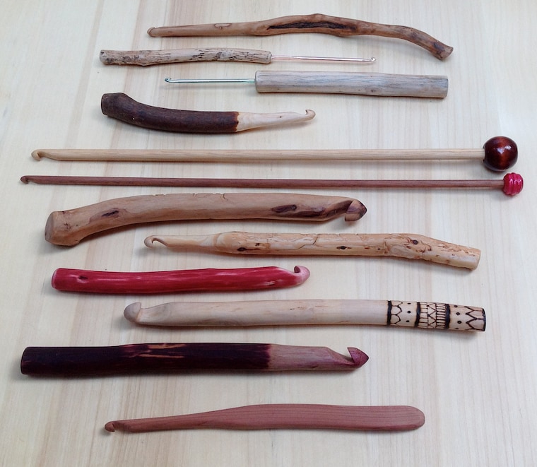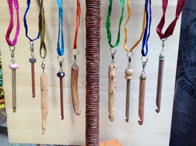 We moved to the beautiful Puget Sound area in 2009, so I started working on my fiber skills, and quickly picked up spinning as well as carving my own hooks...and now yours! I love to find fallen woods on my walks amongst the trees.
