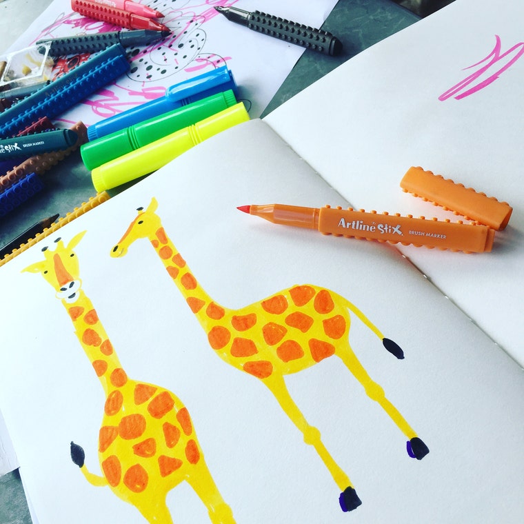 Most works start as sketches mocked up at a weekly sketching session with my little guy -
