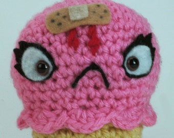 CUSTOM Ouch Cream Cone in Strawberry - "antigurumi" amigurumi figure
