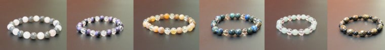 Our second USP is that each crystal bracelet goes through a thorough and methodical product development process. First, I identify the underlying client issue, for example, fear. Then I research which semi-precious gemstones will benefit the issue. Then I use my intuitive skills to whittle down which of them will be most beneficial. In sourcing the stones I try my best to buy from ethically sourcing companies wherever possible. I put the crystals together into a bracelet and then apply this special technique to boost the performance of the jewellery by infusing it with the energy of other crystals in a way that permanently holds which in the above example, tackle fear.