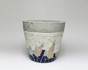 Mosaic on concrete small planter - blue