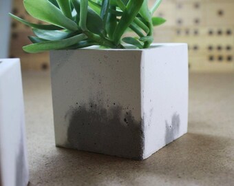 Concrete mini planter - rectangular - White and Gray Cement