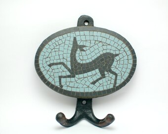 wall hook handmade mosaic with ceramic black and light blue tiles 5mm ( 5,12 in x 5,51 in ) - black deer