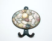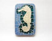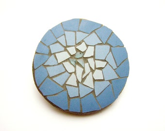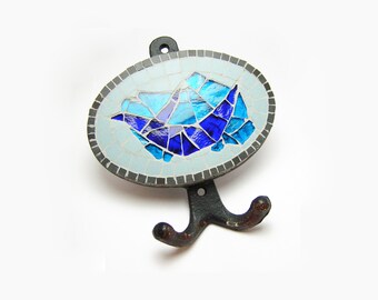 wall hook - handmade mosaic- ceramic black, light blue tiles and blue stained glass tiles ( 5,12 in x 5,51 in ) - bluebird