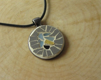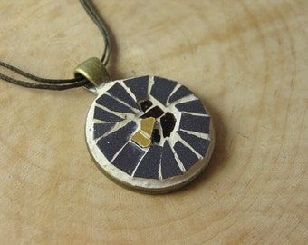 Mosaic Gray Pendant 1 inch, Mosaic Accessories, Mosaic Art Jewelry, Statement Jewelry, Boho, Bohemian Ethnic Mediterranean Pendant
