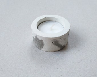 Concrete TeaLight Candleholder - Gray and White Concrete - Cylinder