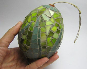 Mosaic Handmade Ornament egg - Christmas Tree and Home decor - green ceramic and glass tiles