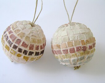 2 Mosaic Handmade Ornament Balls - Christmas Tree and Home decor - marble tiles