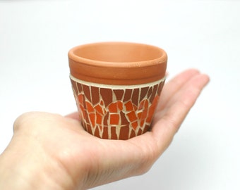 mini ceramic mosaic planter - red orange