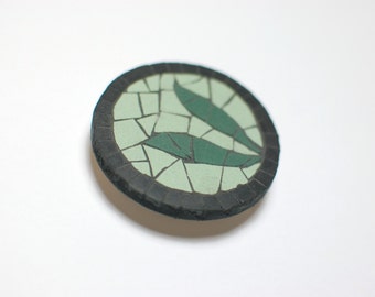 fridge magnet handmade mosaic with green and black ceramic tiles - Green Leaves