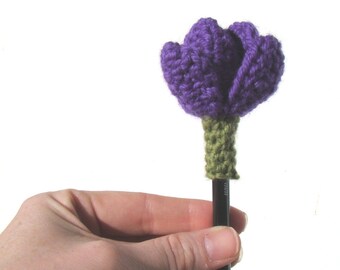 Crocus Flower Crochet Pattern - Pencil Topper - Eraser Cover - Springtime Crochet - Teacher gift - add fidget - Yarn Bomb Crochet Pattern