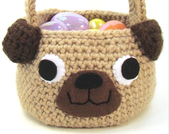 Dog - Easter Basket Crochet Pattern - Trick Or Treat Bag - Pug Puppy Dog PDF INSTANT DOWNLOAD