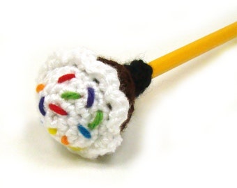 Cupcake Pencil Topper - Eraser Cover - Birthday Decor - Crochet Cupcake Pattern - add fidget - yarn bomb pattern - PDF INSTANT DOWNLOAD