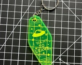 5 out of 5 starsThe keychain is pretty and well made. It is such a nice saturated green. A great accessory for if you too want to leave.