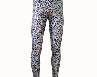 Holographic Animal Print Leggings - Leopard Cheetah Burningman, Halloween,- Festival Shiny Sparkle Stretch Dance Women's Men's Pants