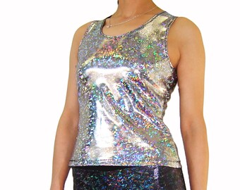 Sparkly Holographic Women's Tank Top Singlet Sleeveless Shiny Glitter Disco Costume Burningman