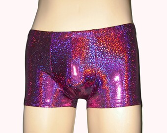 Men's Holographic Pouch Shorts, Fuchsia Pink Booty Shorts - Halloween - Dancing Tree - Hot Pants - Hologram Shiny, Burningman, Cruise