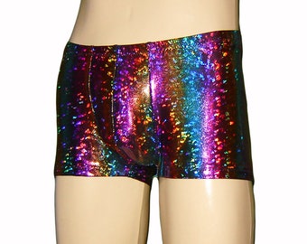 Men's Holographic Pouch Shorts, Rainbow Booty Shorts - Halloween - Dancing Tree - Hot Pants - Hologram Shiny, Burningman, Cruise