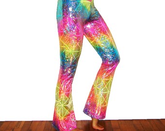 Rainbow Holographic Pants Unicorn Rockstar Shiny Sparkle Neon Pride Rave New Years Halloween