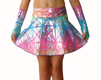 Holographic Micro MIni Skirt Shiny Sparkles Halloween Rave Poller Derby